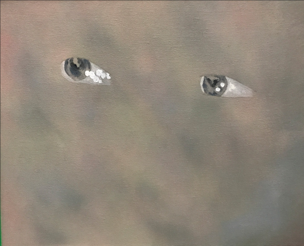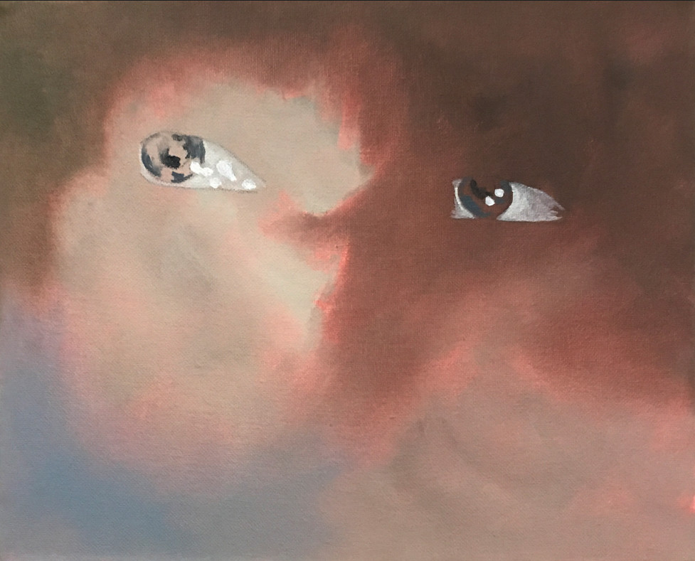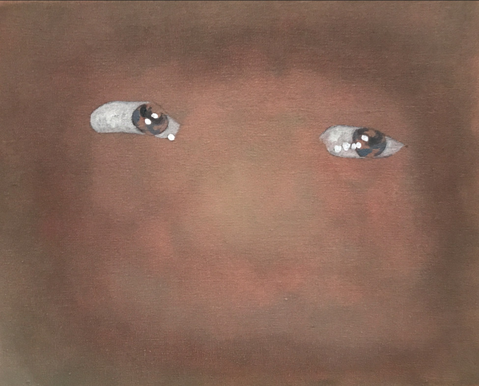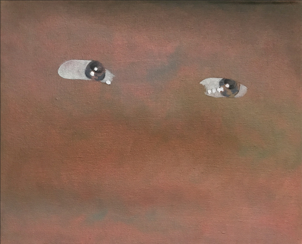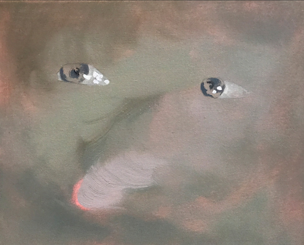 Falta una última parte por comentar: las 26 pinturas al óleo de la serie A picture of social Life at the end of old times. Consiste en la descomposición de un GIF en las versiones fijas que lo construyen. Un ordenamiento lineal de 26 foto/picto/gramas que contienen el movimiento ocular que nos es —casi— invisible hasta que la imagen se pone en movimiento. Además de la interrogación por la mirada que está intrínseca en la obra, mirar la mirada que se mueve de un lado a otro como leyendo, o como explorando el scroll de la pantalla, hace que el interés considere el valor de las pinturas como conjunto y no individualmente. Es francamente refrescante ver esta obra tan reciente, hecha en la Residencia 797 apenas un par de semanas antes que abriera la exposición, la cual está por terminar su estancia en Ayer.