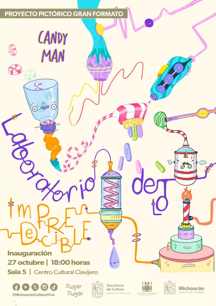 Laboratorio de los impredecible de Candy Man fue un proyecto de Gran Formato en el Centro Cultural Clavijero, Sala 5. Octubre – diciembre 2023