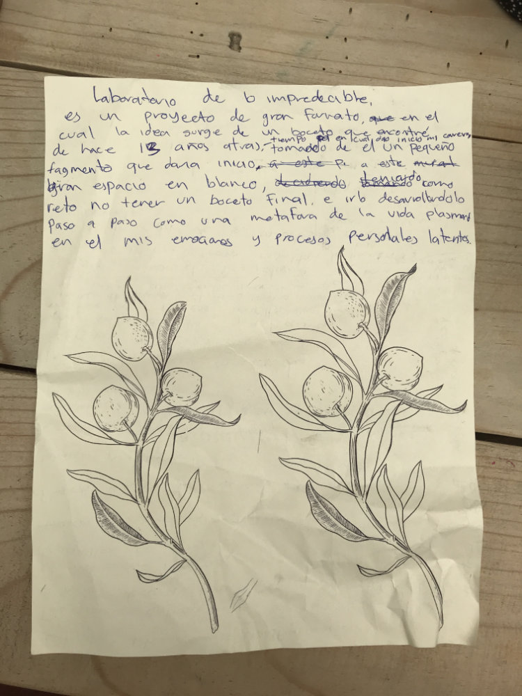 Aquí la incertidumbre ha sido la guía, la directriz fundamental de la experimentación. Con apenas un boceto preliminar en mano –como mapa sin rutas completas o un diagrama de flujo con ramas por definir– y una nube densa de emociones sobre los hombros, Candy Man ha dispuesto todos los elementos de este proyecto pictórico en un formato amplio, envolvente y cromático. Describe el montaje de un laboratorio donde se sintetizan sustancias y afectos para la obtención de un extracto (una gota-esencia), mediante purificación y catarsis. Se trata de una metáfora vital que condensa emociones y procesos personales latentes.