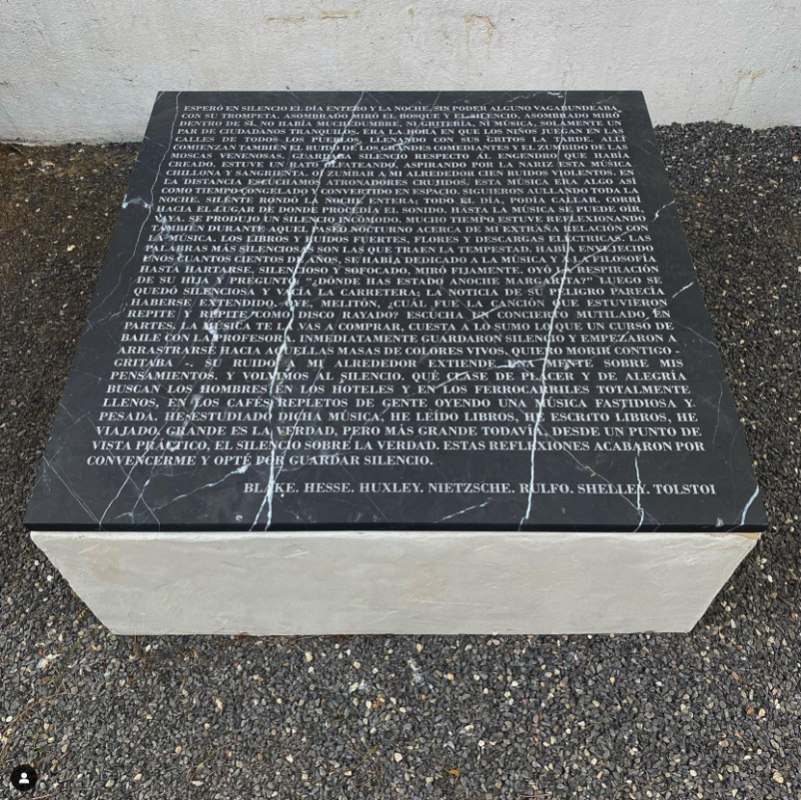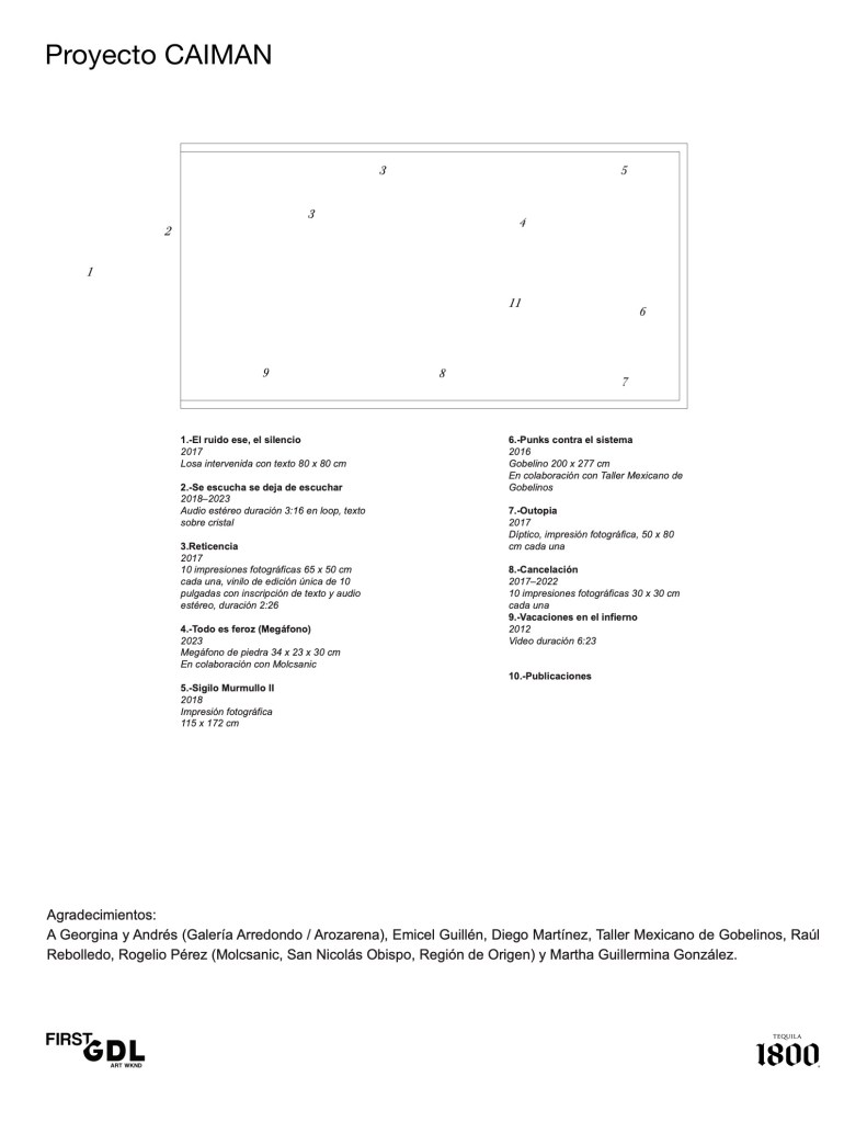 La reunión de proyectos que hemos traído a sala invoca fenómenos como la comunicación pública de los comunes, el murmullo y el rumor, ese terreno que produce ansiedades y urticarias en quienes desean controlar la opinión pública desde posiciones de poder. También convergen formas espontáneas de protesta que involucran la escritura, las memorias y el patrimonio material al habitar el espacio público. Ese terreno es el sitio de trabajo de Martínez, donde las sonoridades, resonancias y amplificaciones nos conectan con intensidades de la vida.