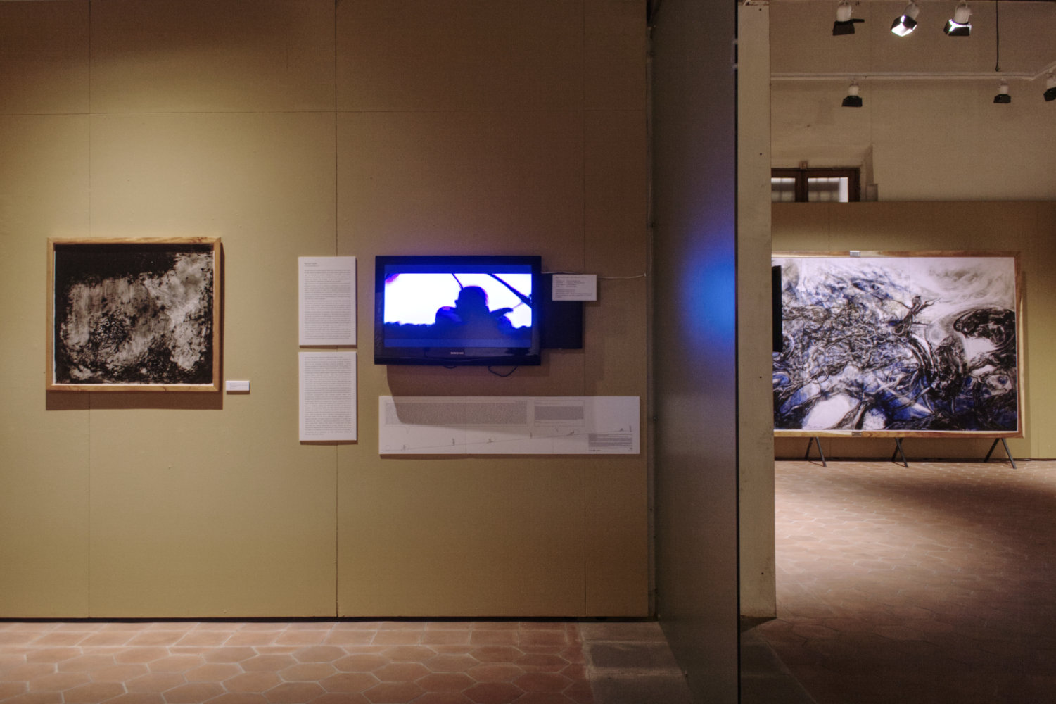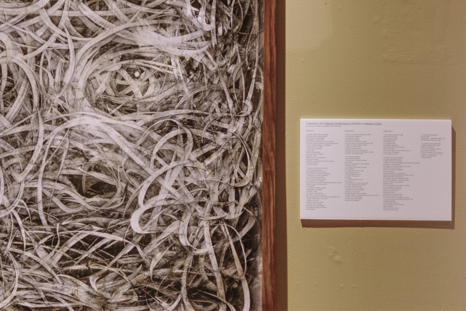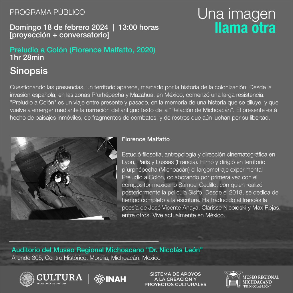 En sala nos proponemos una presentación especular de las conversaciones originarias que hicieron posible esta obra, interlocución de tres personas, cada una con su lenguaje, soportes, su poética y su política. Esto último es particularmente importante en Preludio a Colón (2020) de Florence Malfatto, un largometraje experimental concebido desde la antropología cinematográfica y realizado en territorio –la región mazahua, la nación p’urhépecha–, incluyendo material documental. La reflexión cultural y la dimensión política de las imágenes en esta obra alude tanto al pasado reciente como a la memoria de los pueblos originarios, un campo de trabajo que comparte con Samuel Cedillo, y quien realiza la composición sonora de la película.