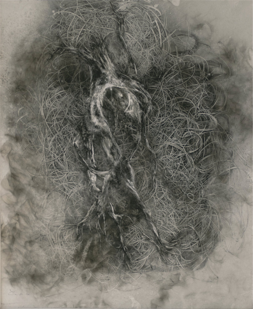 La obra conceptual, performática, gráfica y sonora de Samuel interviene el espacio arquitectónico y el registro de estas imágenes –las pictóricas y las que están en movimiento– que se llaman unas a otras. El sonido se ofrece como el terreno donde todas las artes y todas las personas pueden intervenir para generar algo más grande.